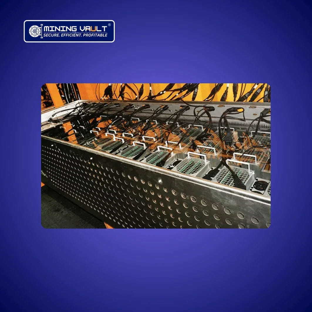 Installations de minage de crypto-monnaie Mining Vault avec matériel informatique et câblage organisé